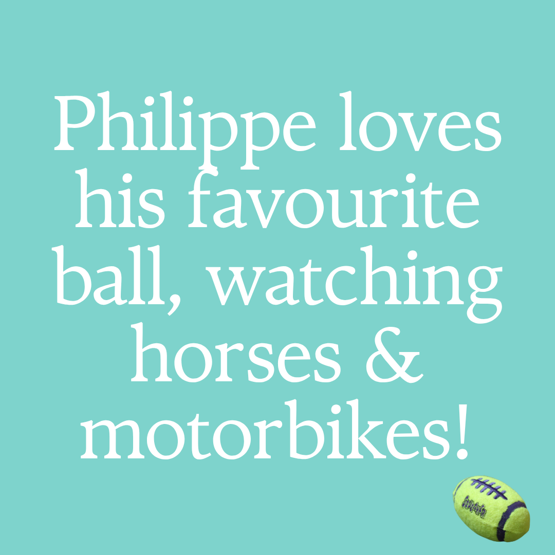 He has a favourite ball which he plays with outside usually (shhhhh – it’s actually ball number 4 of the same type but he hasn’t realised yet). Phil (as he’s called usually) is brilliant at being methodical and likes to take his time with anything and everything. Phil loves belly rubs, and enjoys watching horses and motorbikes, both out & about and also on the television. He is great at having a go at anything & has been especially good at learning tricks; he has achieved his novice, intermediate and advanced titles.